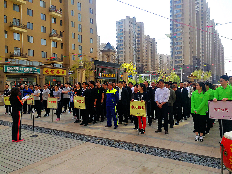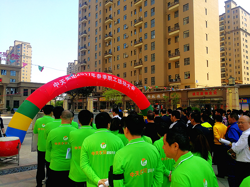 4月29日下午,中天集團2017年春節(jié)職工運動會如期舉行。只見在中天桃花源農(nóng)貿(mào)超級市場前廣場上,彩旗飛揚,鑼鼓喧天,來至于集團機關(guān)、天運公司、天盛公司、萬豪酒店、物業(yè)公司、農(nóng)貿(mào)公司六支代表隊的100多名員工匯集在這里,釋放激情,揮灑汗水,盡情享受著中天集團的體育盛宴。
