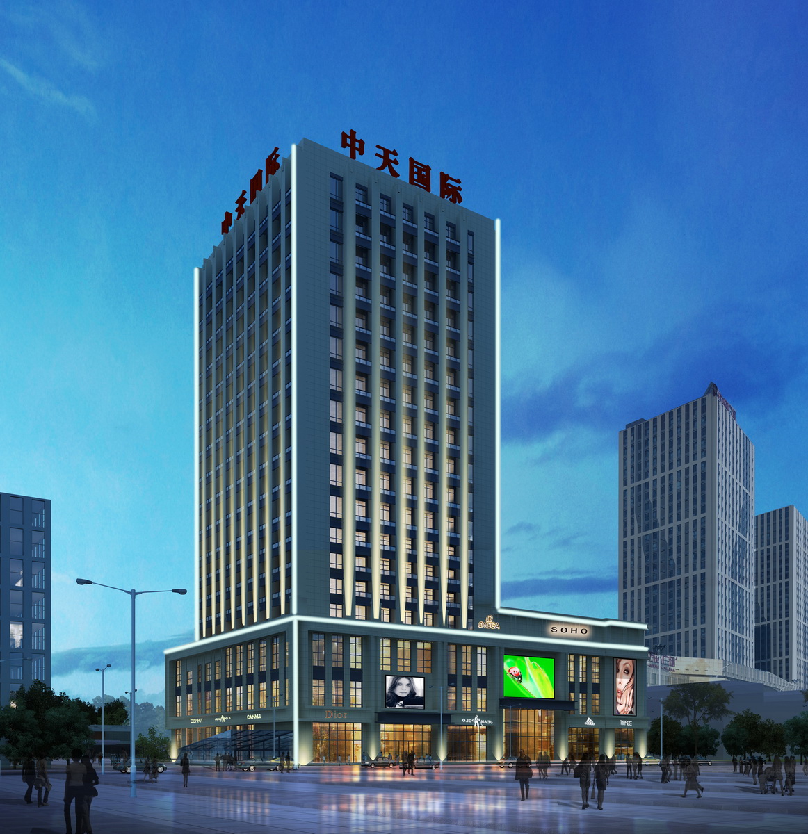 中天國際由中天集團投資,營口天達發(fā)展有限公司開發(fā)建設(shè),項目坐落于渤海大街南,小八路北與市府路西交匯處,是一座集商業(yè)、餐飲、高端酒店、奢華配套公寓等的商業(yè)一體化項目。