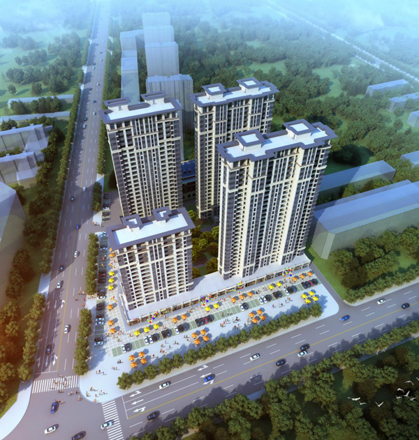 該地塊用地性質(zhì)為居住用地、商業(yè)服務(wù)業(yè)設(shè)施用地,用地面積:42490.9平方米,總建筑面積:91297.45平方米,其中住宅建筑面積為69489.92平方米,商業(yè)建筑面積為6810.74平方米。南北兩排住宅建筑與沿街商業(yè)圍合形成中心景觀區(qū)域,既滿足用戶需要又提升商業(yè)價值。另外還設(shè)計了物業(yè)配套建筑和文化活動中心,物業(yè)建筑面積為300平方米,不僅為用戶提供了更加方便快捷的服務(wù),還為用戶配備了舒適的休閑娛樂活動區(qū);小區(qū)道路等級分明,功能明確,沿街設(shè)置三個入口以及一個地下車庫入口,小區(qū)道路寬6米,機動車位共665個,其中地上停車位293個,地下停車位372個,為業(yè)主提供了足夠的停車空間;小區(qū)綠化率達到30%,讓業(yè)主置身園林體會“曲徑通幽處”、“小橋流水人家”的意境。