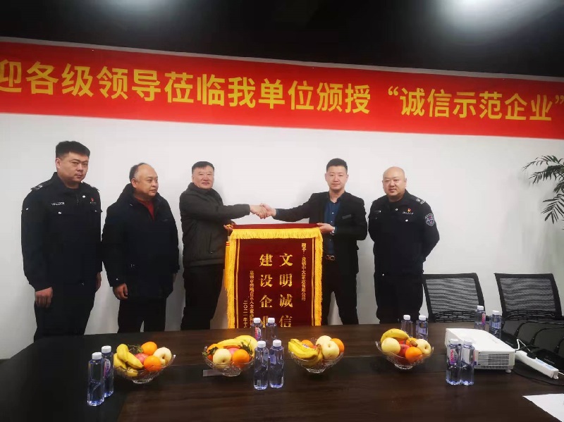近日,盤錦市興隆臺區(qū)人力資源和社會保障局局長李慶,興隆臺區(qū)勞動監(jiān)察大隊柴助海主任等一行領(lǐng)導(dǎo)蒞臨中天企業(yè)集團(tuán)盤錦城市公司,為企業(yè)頒發(fā)“2021年度興隆臺區(qū)誠信建設(shè)示范企業(yè)”榮譽(yù)牌匾。