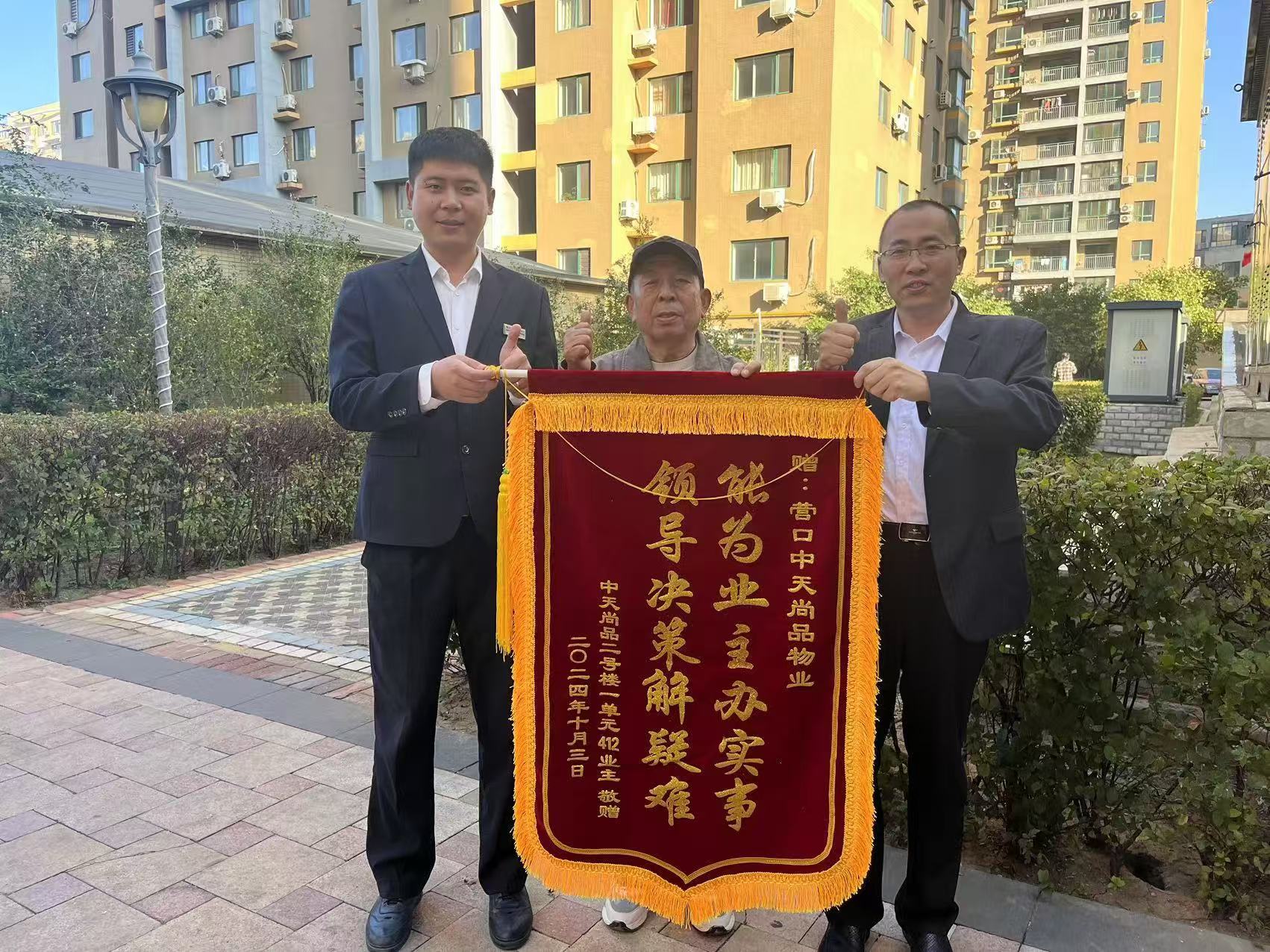 好物業(yè),不僅盡力,而且盡心,對業(yè)主盡心、對工作盡心,業(yè)主才能更貼心、放心、省心、傾心。近日,中天尚品物業(yè)迎來了2號樓1單元404的業(yè)主,業(yè)主手握一面印有“能為業(yè)主辦實(shí)事,領(lǐng)導(dǎo)決策解疑難”鎏金大字錦旗,贈送中天尚品小區(qū)物業(yè)部,一聲感謝暖人心懷,一面錦旗彰顯擔(dān)當(dāng)。中天物業(yè)人用真情和行動,為呈現(xiàn)有溫度的鄰里生活全力以赴。