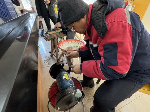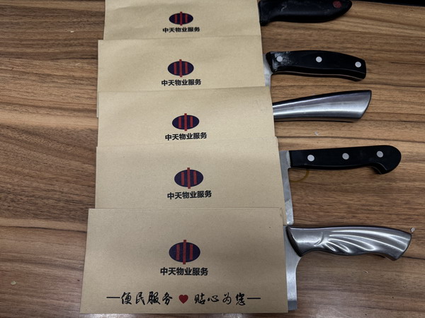 寒冷的天氣也阻擋不住業(yè)主們參加活動(dòng)的熱情,他們拿出家里的菜刀、砍刀、剔骨刀、剪刀、西餐刀……等各式刀具來到服務(wù)中心的便民服務(wù)點(diǎn)排隊(duì)磨刀。在磨刀等候的閑暇之余業(yè)主們還可以嘮著家常,拉近了彼此之間的距離。物業(yè)工作人員為業(yè)主的每把刀具上貼好樓號(hào)房號(hào),做好登記。