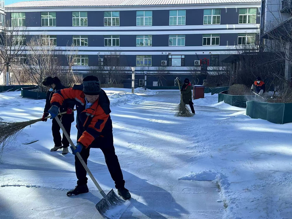 大伙兒熱火朝天、干勁十足的掃雪身影得到了許多路過業(yè)主的表揚和贊賞,而業(yè)主的肯定和贊許更增添了大家雪中奮戰(zhàn)的激情和動力。經(jīng)過努力,大家終于將小區(qū)內主干道、小區(qū)門口、商網(wǎng)外圍的積雪清掃完畢,確保了業(yè)主出行道路安全順暢。戰(zhàn)風雪,斗嚴寒。此刻,比雪景更美的是這群物業(yè)人。雖然這場暴雪“封鎖”道路,但是鎖不住物業(yè)與業(yè)主之間的情誼。物業(yè)、業(yè)主齊心協(xié)力,攻克難關。親愛的家人們,有我們在,請您放心出行,安全回家!
