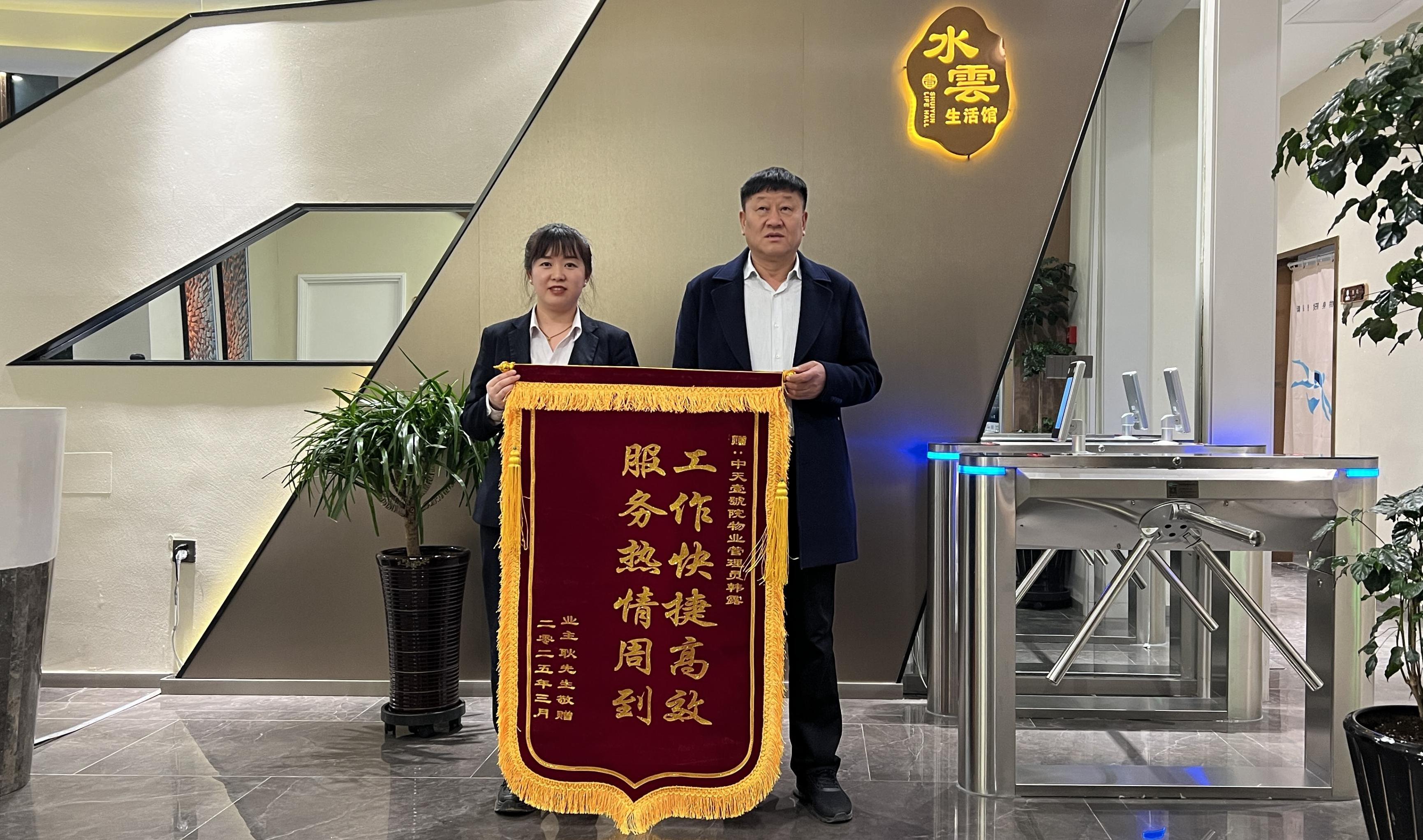 每一面錦旗背后,都有一個(gè)暖心的故事,都閃耀出一份真情和愛心。近日,中天壹號院水雲(yún)生活館的管理員就收到了一面充滿謝意的錦旗。就在上周,業(yè)主帶著外地來的朋友到會館休閑放松。朋友對會館的設(shè)施很感興趣,前臺的工作人員不僅耐心細(xì)致地為他們介紹了各個(gè)區(qū)域的功能,還根據(jù)他們的需求提供了游玩建議,讓朋友贊不絕口。在游玩過程中,業(yè)主朋友落下了自己的圍巾,前臺的工作人員發(fā)現(xiàn)后,第一時(shí)間聯(lián)系了業(yè)主,但業(yè)主表示今天沒有時(shí)間取回,可能要改天再來。我們的工作人員將圍巾收好并妥善保管直到業(yè)主取回。平日里,無論何時(shí)進(jìn)入會館,總能看到看到她面帶微笑,熱情地打招呼,辦理各項(xiàng)業(yè)務(wù)既高效又準(zhǔn)確。遇到業(yè)主咨詢問題,也總是不厭其煩地解答,還會主動(dòng)提供幫助,讓每一位業(yè)主都感受到了家一般的溫暖。