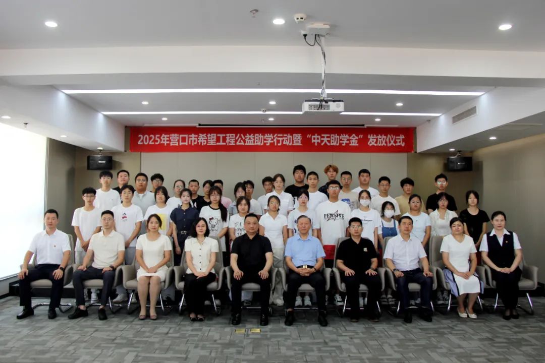 8月18日下午,2025年?duì)I口市希望工程公益助學(xué)行動(dòng)暨“中天助學(xué)金”發(fā)放儀式在中天集團(tuán)總部會(huì)議室舉行。營(yíng)口市團(tuán)市委書(shū)記劉慶男,中天企業(yè)集團(tuán)董事長(zhǎng)于寶權(quán)、總裁于洪波,營(yíng)口市團(tuán)市委副書(shū)記李瀚霖、曹午陽(yáng),營(yíng)口市教育局副局長(zhǎng)關(guān)雪嬌,營(yíng)口市慈善總會(huì)副會(huì)長(zhǎng)黃渤以及獲得資助的35名學(xué)生,出席了本次發(fā)放儀式。